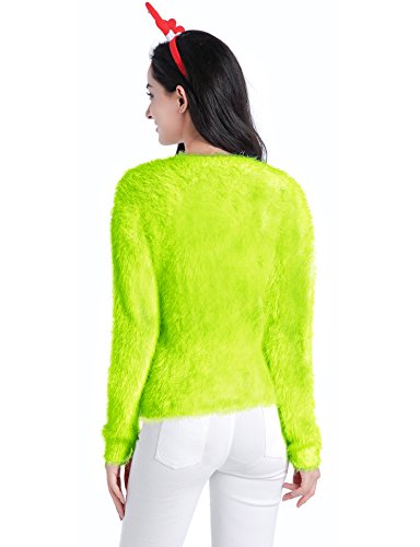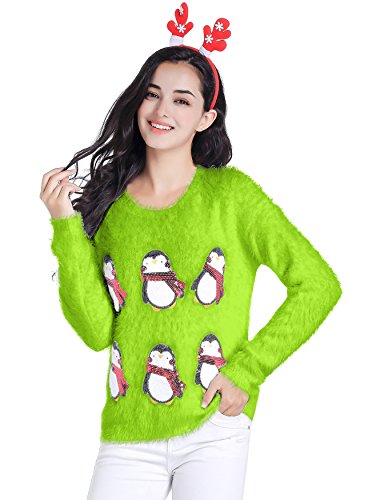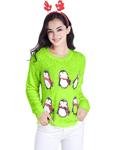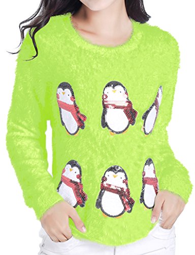 v28 Ugly Christmas Sweater, Women Ladies Girl Xmas Shining Santa Penguin Jumper (Large, CutePenguin Fluo)