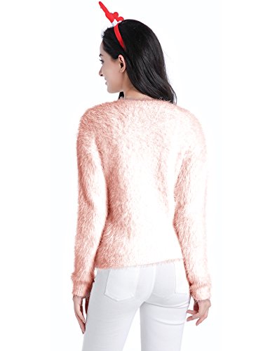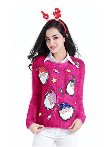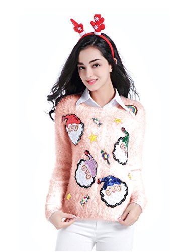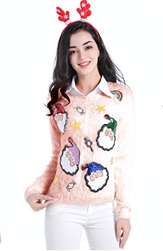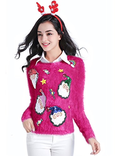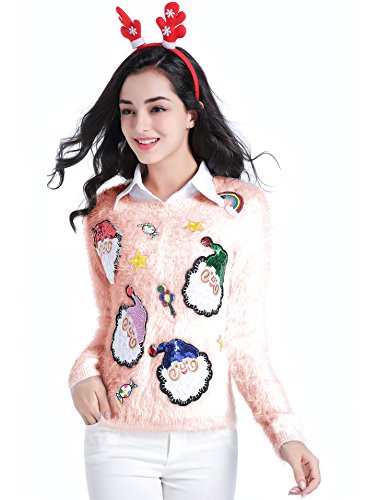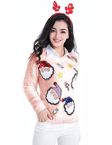 v28 Ugly Christmas Sweater, Women Ladies Girl Xmas Shining Santa Penguin Jumper (Medium, ShiningSanta Pink)