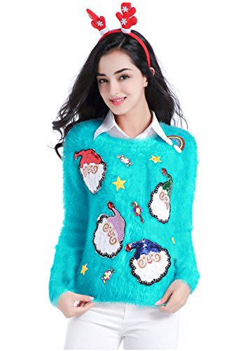 v28 Ugly Christmas Sweater, Women Ladies Girl Xmas Shining Santa Penguin Jumper (Medium, ShiningSanta LakeBlue)