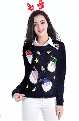 v28 Ugly Christmas Sweater, Women Ladies Girl Xmas Shining Santa Penguin Jumper (X-Large, ShiningSanta Navy)