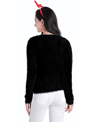 v28 Ugly Christmas Sweater, Women Ladies Girl Xmas Shining Santa Penguin Jumper (Large, ShiningSanta Black)