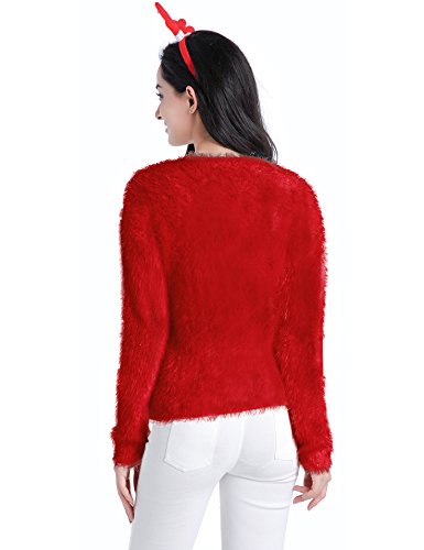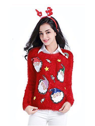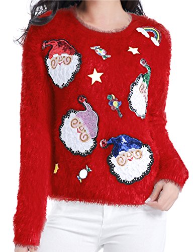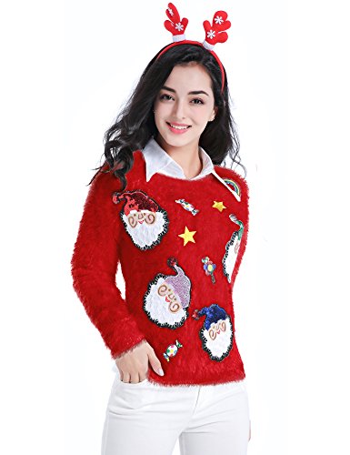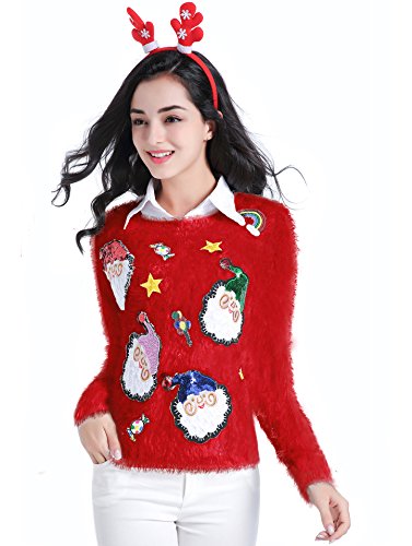 v28 Ugly Christmas Sweater, Women Ladies Girl Xmas Shining Santa Penguin Jumper (Medium, ShiningSanta Red)