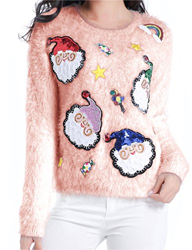 v28 Ugly Christmas Sweater, Women Ladies Girl Xmas Shining Santa Penguin Jumper (Small, ShiningSanta Pink)