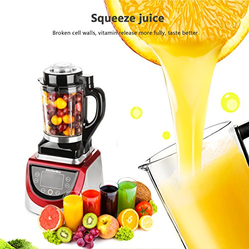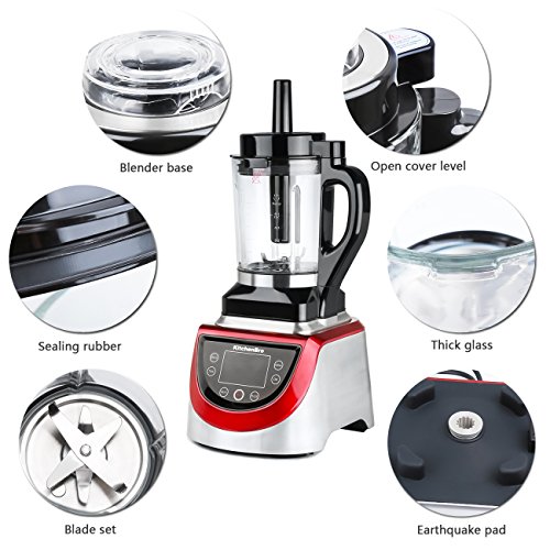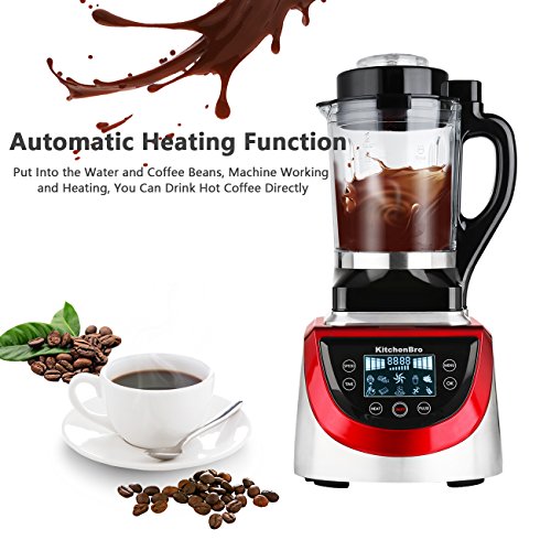 KitchenBro Professional Blender: KitchenBro 2300 watts Commercial Blender, multiple funtion, with easy to read touchpad controls and 7 speeds plus Pulse, 62 OZ glass jar, metal Aluminum base with heating element 800 watts for Boiling hot soups, powerful motor for high speed blending for baby food/smoothies/ice crush, 32,000 RPM, ETL certified, strong heavy duty. This exclusive blend cycle technology creates the perfect blends with the touch of a button. Product Details: 1. Hot soup without a stove, in under 10 minutes, the KitchBro Professional Blender is the perfect tool in the kitchen for creating warming, healthy soups. 2. DIPS &SAUCES: Perfect for easy entertaining, these simple dip recipes are healthy and delicious. Sauces can be the finishing touch that separates a good meal from a great one. 3. Nut milks & Butters: Homemade nut butter is a healthy alternative to cow's milk for vegetarians or those with food allergies. KitchenBro machines have the power to grind your favorite nuts into delicious food. 4: Smoothies, Juices and more: Smoothies and juices in the nutrient Blender are easy to make &provide a refreshing way to include more fruits &vegetable into your diet. 5: Self-cleaning: Pour 1 liter water into the jug. After pressing the power on/off, the screen with the menu buttons will get bright. Select "clean" button to start working. It will Automatic stop when finish cleaning. Why KitchenBro? We strive to provide our customers with products and services which meet and even exceed their expectations. To ensure maximum satisfaction, all our products are individually tested before shipping.Feature