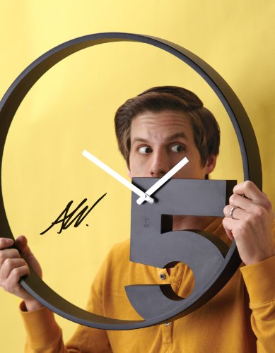 - Feature : Modern, humorous take 5 wall clock by umbra is great for the office / Black molded polymer construction with white hands / Enlarged number 5 is a play on quittin' time or break-time; open design reveals wall behind / Measures 20-1/2-inch in diameter by 1-1/2-inch deep; operates on one AA battery (not included) / Design: alan wisniewski