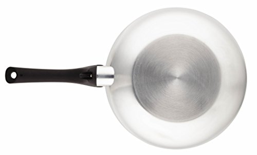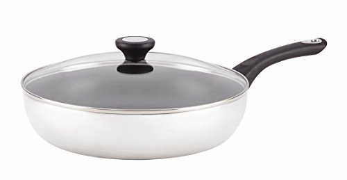 Make everyone's kitchen favorites a whole new eating pleasure, with the stylish, sturdy Farberware New Traditions Stainless Steel Nonstick 12-Inch Aluminum Covered Skillet. New Traditions pairs the time-tested trust and reliability of Farberware with durable aluminum construction to boost the all-around heating and cooking of this large skillet. A polished aluminum exterior delivers a radiant touch of stovetop style, and the shatter-resistant glass lid seals heat and moisture in while providing a handy window on all the delicious cooking. Oven safe to 350 Degree, the skillet handle features classic Farberware styling, and includes a hanging rings for convenient storage. Start a stovetop broccoli, potato and cheddar frittata, and keep it warm in the oven while the family gathers. Hand washing is recommended to preserve the nonstick performance and durability, and this pan partners well with other classic cookware from Farberware. Shine in the kitchen, so easy, delicious cooking can shine at every family meal, with the sturdy Farberware New Traditions Stainless Steel Nonstick 12-Inch Aluminum Covered Skillet.Feature