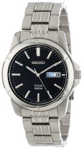 세이코SNE093명의 태양이 검은 다이얼,동력이 공급 된 스테인레스강 워치