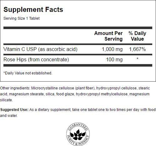 For an all-day release of vitamin C, try Swanson Vitamin C with Rose Hips! This timed- release formula gradually delivers 1,000 mg of vitamin C and 100 mg of rose hips over a 6-8 hour period to promote maximum absorption.