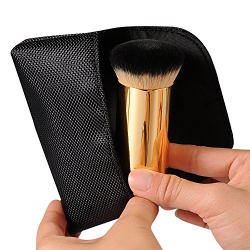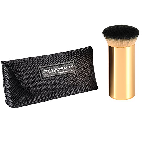 CLOTHOBEAUTY Pro Luxury Gold Handle Powder Foundation Brush, The Buffing Airbrush Finish, Small size with travel Pouch