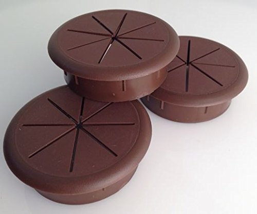 2.375" Round Flexible desk Grommet, Plastic, 3-Pack (Brown)