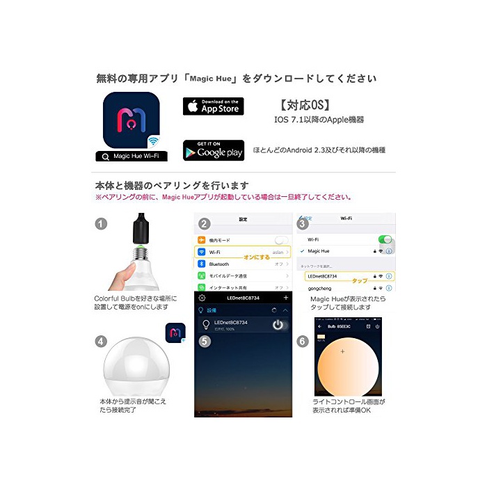 원본상품명: Magic Hue WiFi LED電球ワット E26口金 玄 色度電球色 暖かい白 色&冷かい白 色調節可能な調光相の60W白熱電球相は、とスマトフォンで動作します