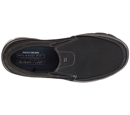 Binding : Apparel Product Description Stretch out and take it easy in style with the SKECHERS Relaxed Fit®: Hinton - Baris shoe. Four way stretch mesh fabric and synthetic upper in a slip on casual comfort loafer with stitching accents. Gel Infused Memory Foam insole. Stitching accents. Stitched seam moc toe front with piping detail. Side overlays with edge trim. Side S embroidered small logo. Dual side stretch fabric panels for easy slip on fit. Super stretchable front panel for added comfort and flexibility. Padded collar. Soft fabric shoe lining. Relaxed Fit® for roomy comfortable fit. Gel Infused Memory Foam cushioned comfort insole. Lightweight flexible supportive shock absorbing midsole. 1 1/4 inch built in heel. Flexible segmented design rubber traction outsole. 0