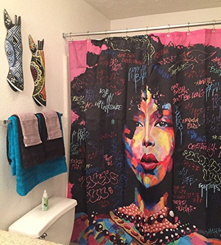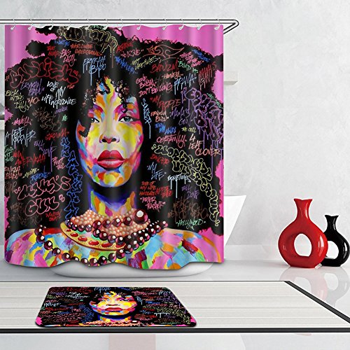 African American Shower Cutains - Woman Abstract Print Waterproof Mildew Resistant Fabric Polyester Bath Curtain for Hip Pop Art Bathroom Decor 66x72 inc