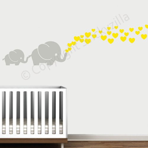 -. Title : Cutie Grey Elephants with Colored Bubble Hearts Vinyl Wall Decal Sticker Baby, Nursery, Play Room Great Baby Shower Gift