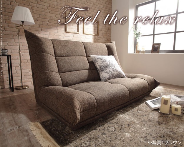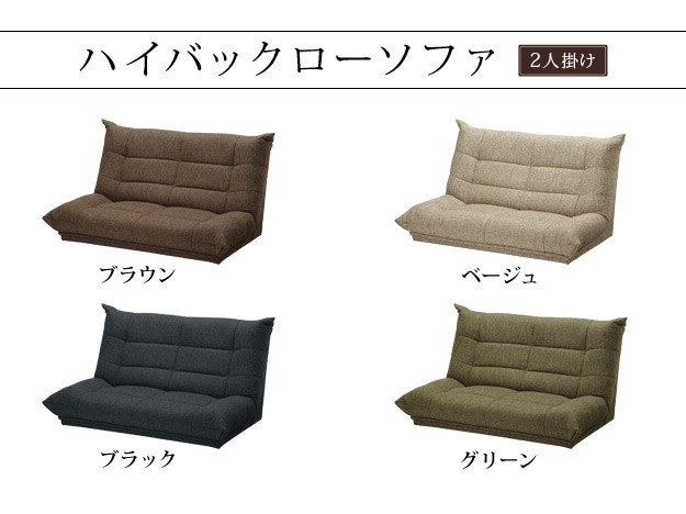 ●ローソファー ヴィンテージ デザイン ハイバック ファブリック フロアソファー 二人掛