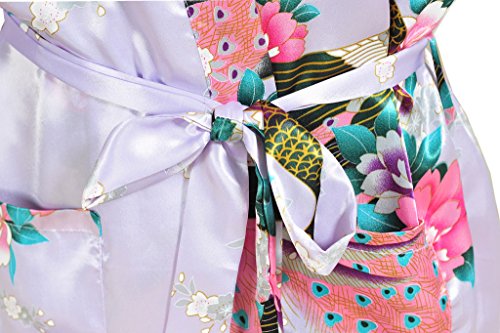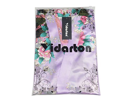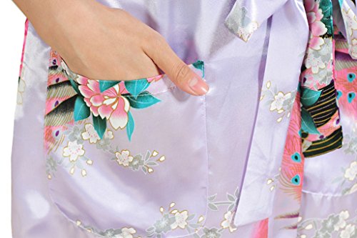 Yidarton Womens Long Fashion Kimono Robe with Peacock and Blossoms Light Purple Small