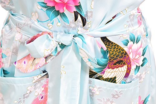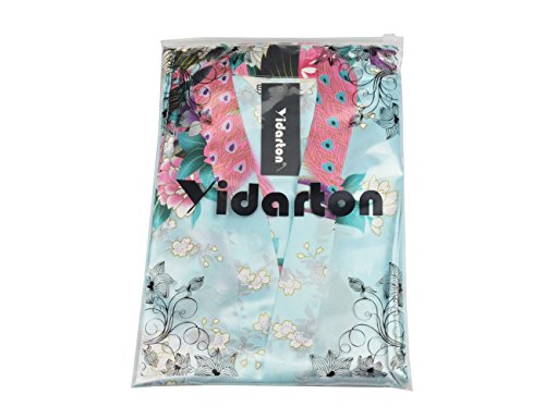 Yidarton Womens Long Fashion Kimono Robe with Peacock and Blossoms Light Blue Small