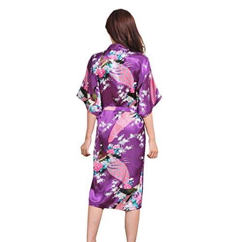 Yidarton Womens Long Fashion Kimono Robe with Peacock and Blossoms Purple Medium