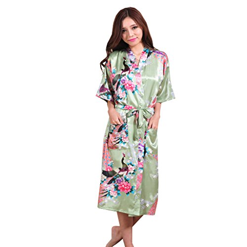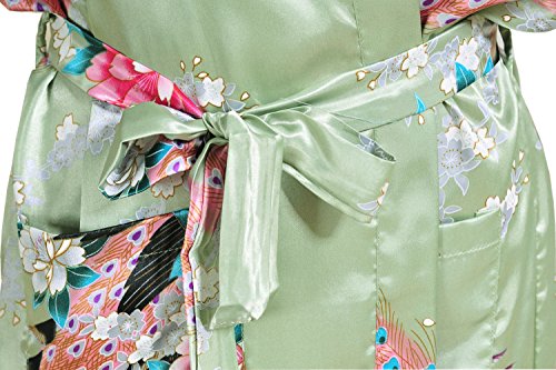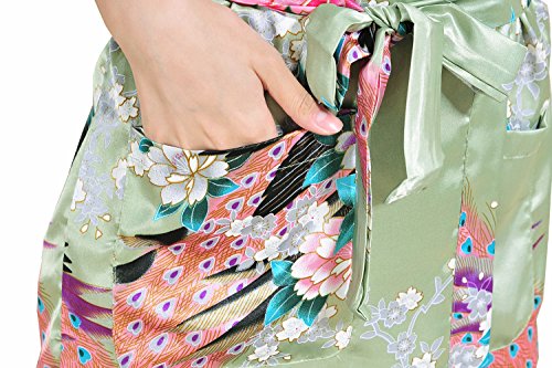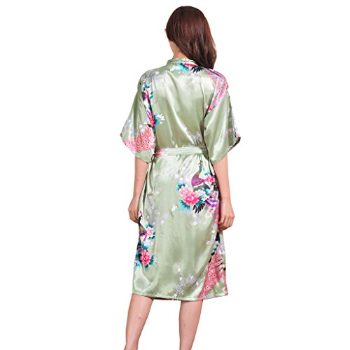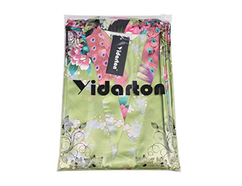 Yidarton Womens Long Fashion Kimono Robe with Peacock and Blossoms Light Green Small