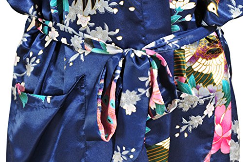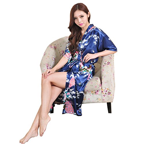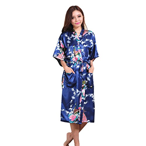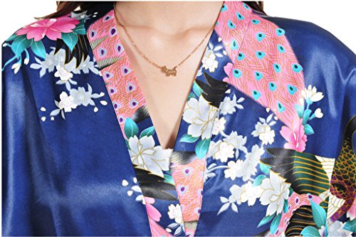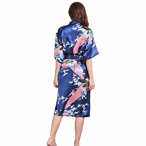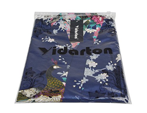 Yidarton Womens Long Fashion Kimono Robe with Peacock and Blossoms Navy Small
