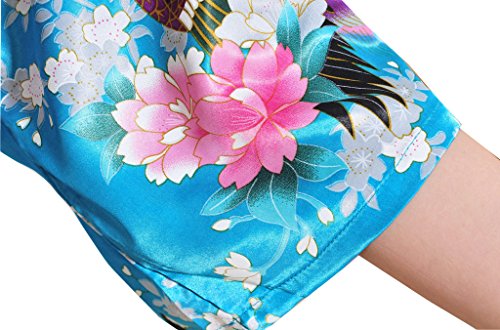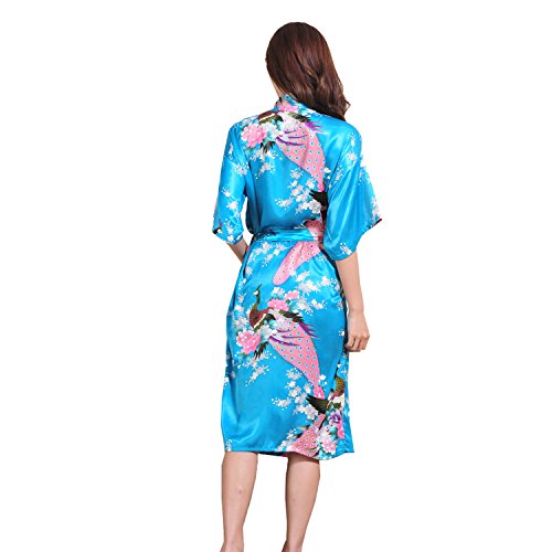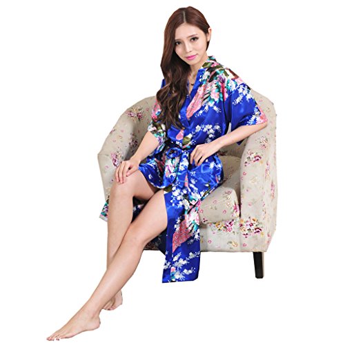 Yidarton Womens Long Fashion Kimono Robe with Peacock and Blossoms Bright Blue Small