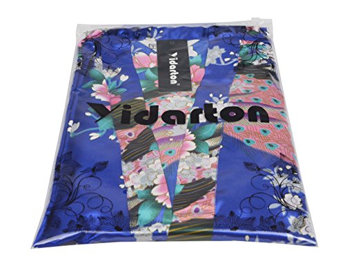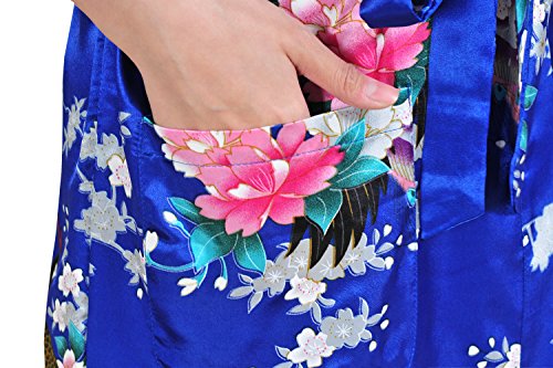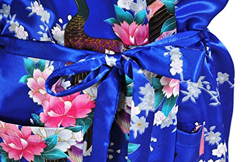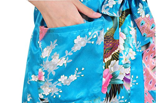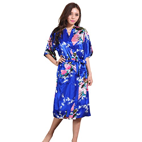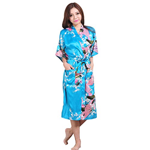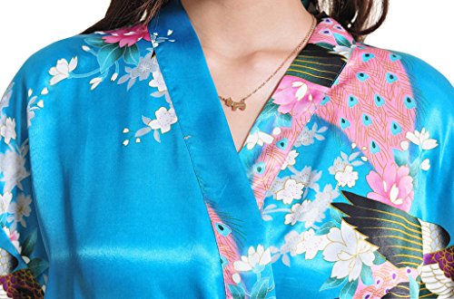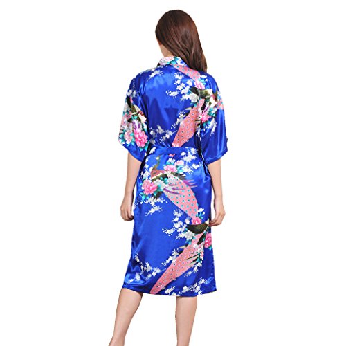 Yidarton Womens Long Fashion Kimono Robe with Peacock and Blossoms Bright Blue Large