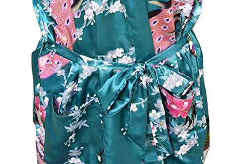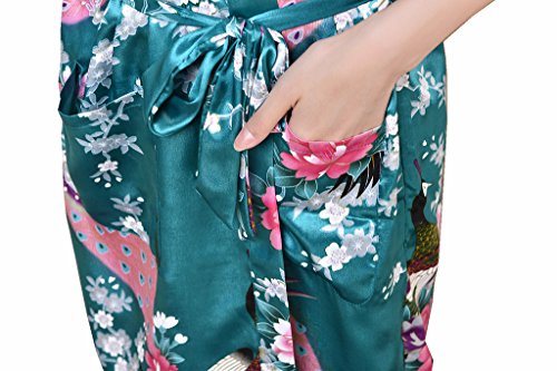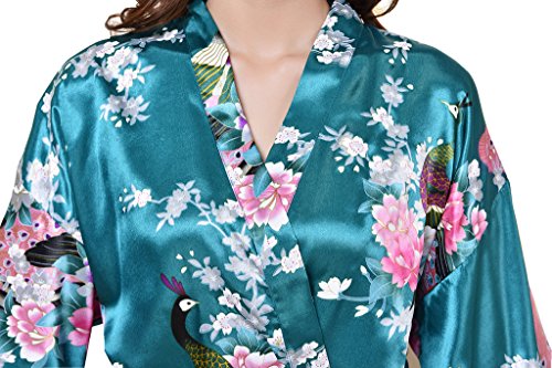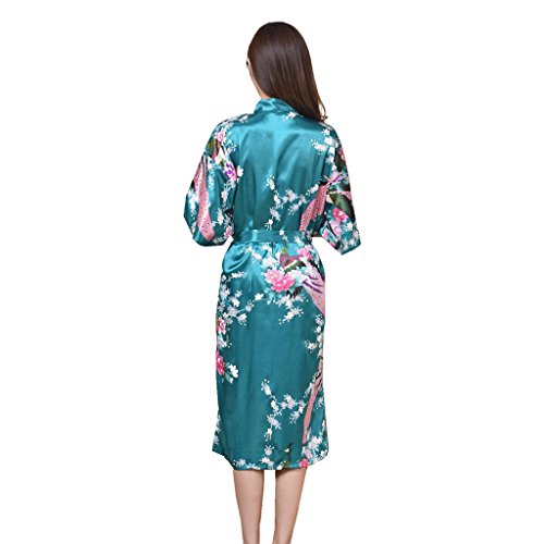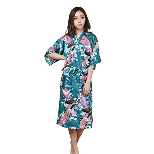 Yidarton Womens Long Fashion Kimono Robe with Peacock and Blossoms Dark Green Large