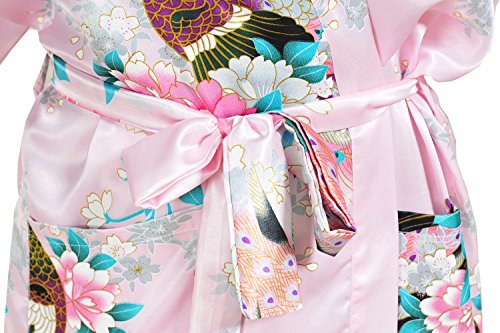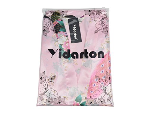 Yidarton Womens Long Fashion Kimono Robe with Peacock and Blossoms Pink Large