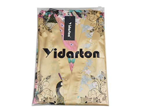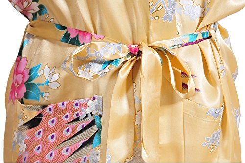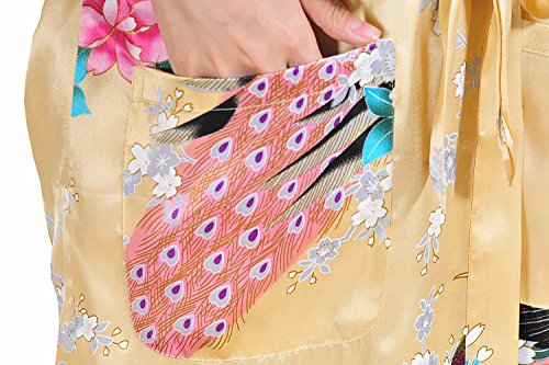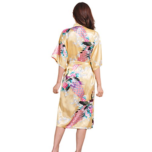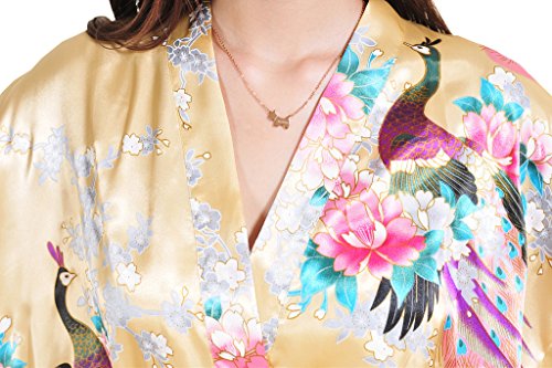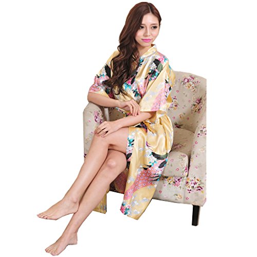 Yidarton Womens Long Fashion Kimono Robe with Peacock and Blossoms Yellow Small
