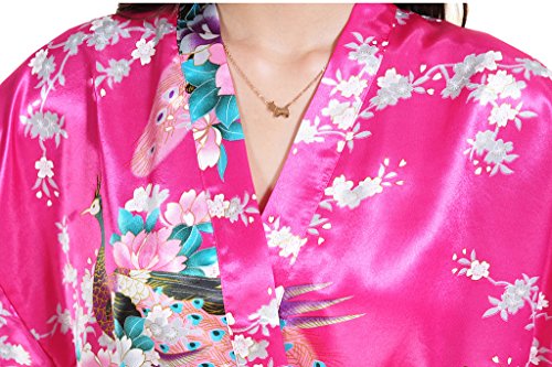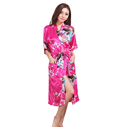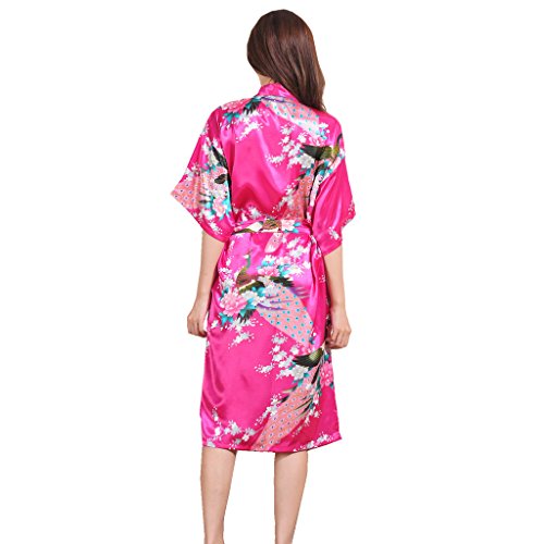Yidarton Womens Long Fashion Kimono Robe with Peacock and Blossoms Rose Medium
