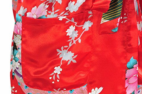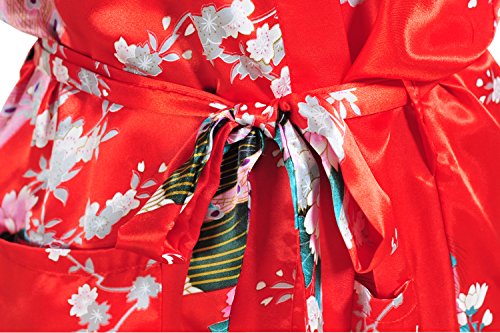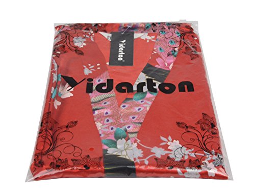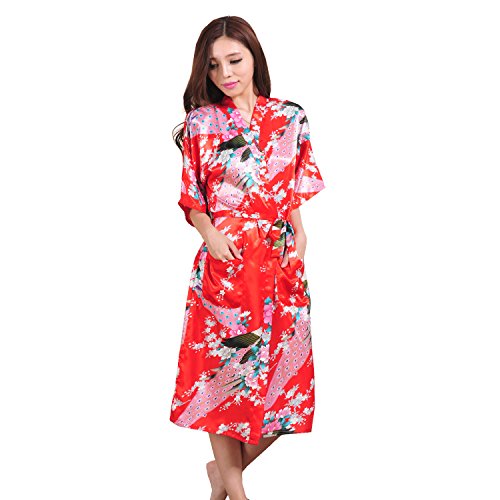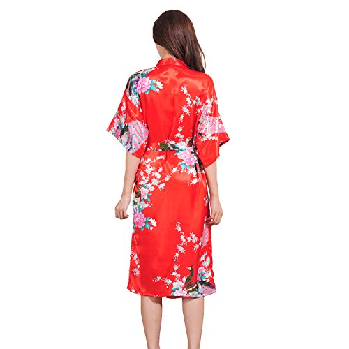 Yidarton Womens Long Fashion Kimono Robe with Peacock and Blossoms Red Large