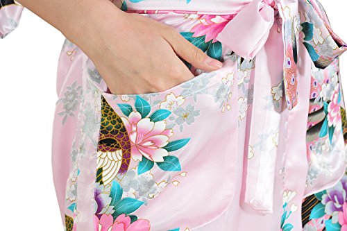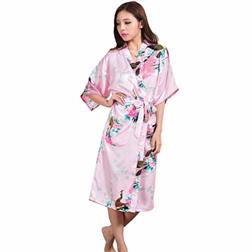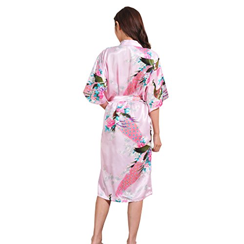 Yidarton Womens Long Fashion Kimono Robe with Peacock and Blossoms Pink Medium