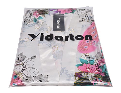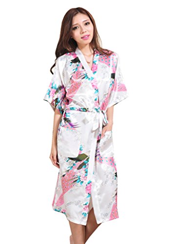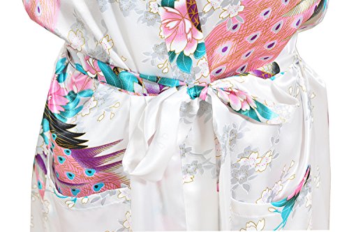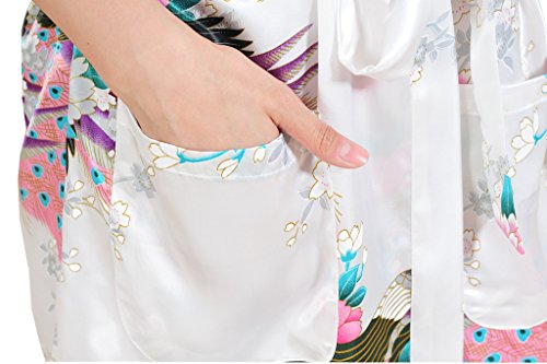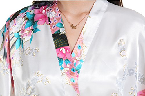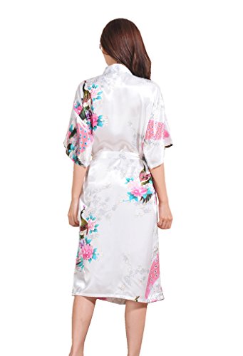 Yidarton Womens Long Fashion Kimono Robe with Peacock and Blossoms White Medium