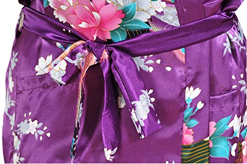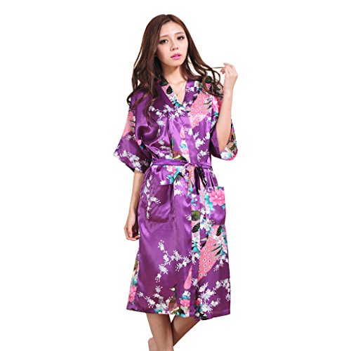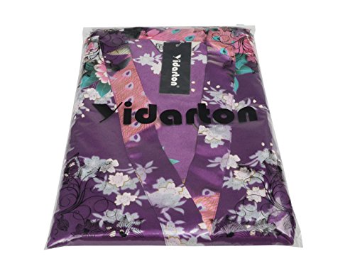 Yidarton Womens Long Fashion Kimono Robe with Peacock and Blossoms Purple Small