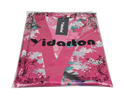 Yidarton Womens Long Fashion Kimono Robe with Peacock and Blossoms Rose Small