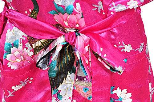 Yidarton Womens Long Fashion Kimono Robe with Peacock and Blossoms Pink Small