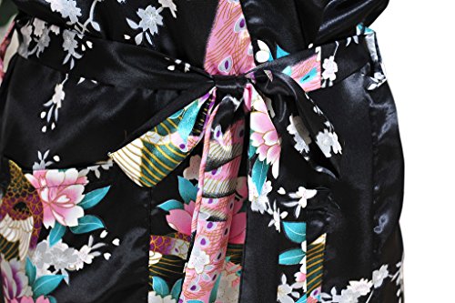 Yidarton Womens Long Fashion Kimono Robe with Peacock and Blossoms Black Small