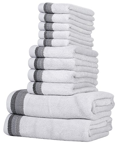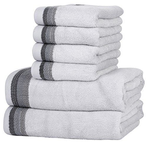 Crystallove Bamboo Fiber add Cotton Face Hand Towels and Bath Towels Set of 3pcs for Home or Hotel Using (1pcs for each, grey)