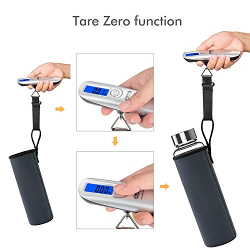 [Backlit LCD Display with Tape Measure] Dr.meter 110lb/50kg Digital Hanging Luggage Scales with Tape Measure 3.3ft/1m for Travel Baggage Weight / Dimension Measurement,Velvet Carry Pouch Included
