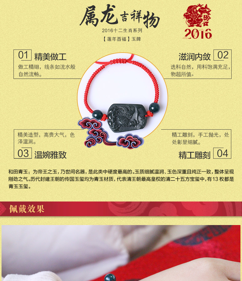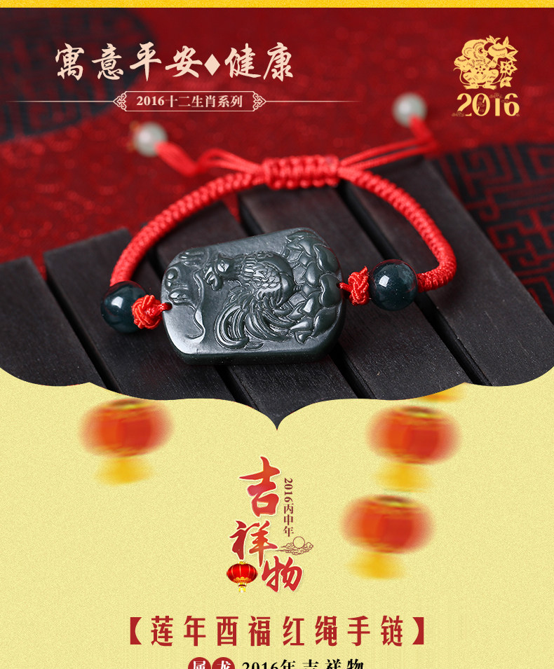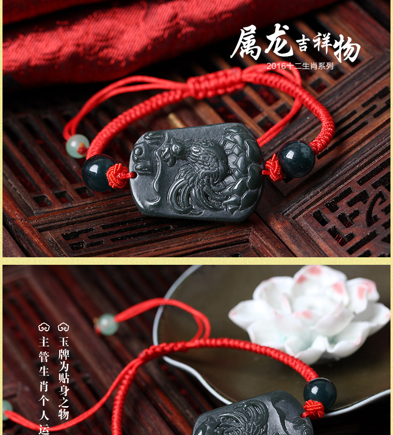 开光十二生肖属龙吉祥物莲年酉福玉手链平安项坠礼物