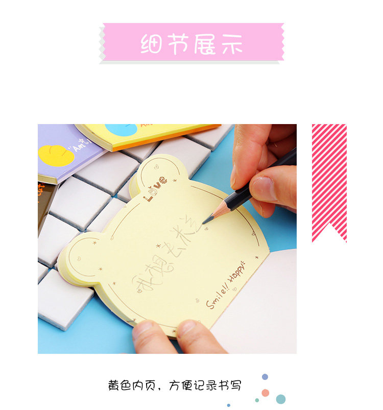 卡通熊头便签本可爱记事便签本子留言贴卡通