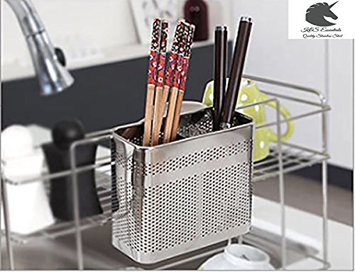 K&S Essentials Stainless Steel Chopsticks Kitchen Utensil Holder / Hook Type / 2 Divided Cells / Dishwasher Safe