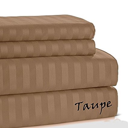 Four { 4PC } Stripes Patterned Taupe Color 100% Egyptian Cotton Quality Brand New Sheet Set { 16" Fit Pocket } - Perfect King Size - 600 Thread Count Made By NH Linen
