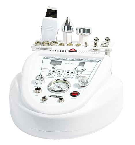 -. Feature : Diamond Microdermabrasion function: removes skin debris, scars, blemishes, wrinkles and uneven pigmentation. / Massage function: massages your skin and the surrounding tissues to iron out unsightly wrinkles and fat deposits. Include two massager probes. / Skin Scrubber function: Cleans off the dirtiness in the pores and make the skin become clean and fresh. Include a skin scrubber. / Includes TWO DERMABRASION STAINLESS STEEL HANDLES. 9 PC DIAMOND TIPS which include --3 LARGE: 1 Fine, 1 Medium, and 1 Coarse;3 MEDIUM: 1 Fine, 1 Medium, and 1 Coarse;3 SMALL: 1 Fine, 1 Medium, and 1 Coarse. / Also includes 360 cotton FILTERS (6 bags x 60 filters per bag) (240 small and 120 large ones) and Two cylinder-like plastic oil filters. AIR HOSE FOR DIAMOND FILTER. POWER CABLE. Safety: CE certified. One year warranty and life time parts support.