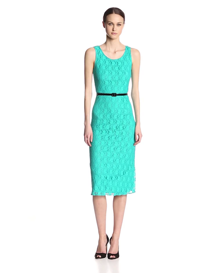 Star Vixen Women's Sleeveless Lace Midi Dress with Belt