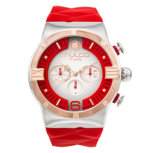 Mulco Two Dome Swiss Quartz Chronograph Movement Women's Watch | Sundial Display with Rose Gold Accents | Red Watch Band | Water Resistant Stainless Steel Watch | MW5-4273-063