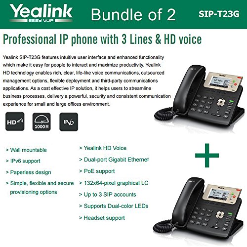Yealink SIP-T23G, 3 Lines HD Professional VoIP Phone, 3SIP Accts, 3way conf., dual port Gigabit, PoE, BUNDLE of 2