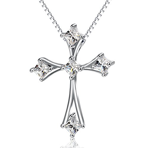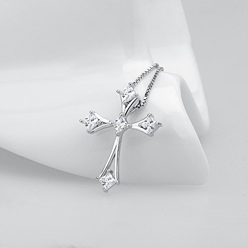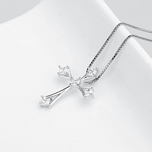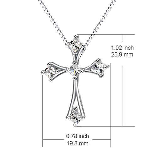 -. Feature : Sterling silver necklace with cross pendant featuring heart-shaped cubic zirconia stones / Material: 925 Hypoallergenic Sterling Silver with Cubic Zirconia,Tarnish Resistant, Nickel Free / Pendant Size:25.9*19.8 mm, Chain length: 18 inches / Package with gift box / Perfect Gifts for yourself, Christmas Gift, Valentine's Day Gift, Mother's Day Gift, Birthday Gift, Wedding Anniversary Gift, your family, your friends and more. Simple, beautiful and inspirational gift for someone special. The quality of the piece was excellent and it makes for a piece that others will admire
