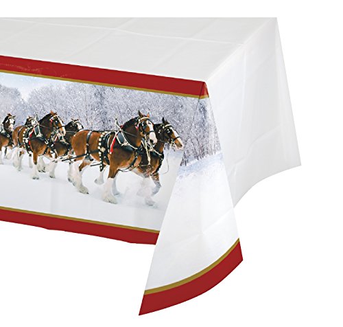 Creative Converting Budweiser Border Print Plastic Tablecover, 54 x 102", Clydesdale Pattern, Multicolor