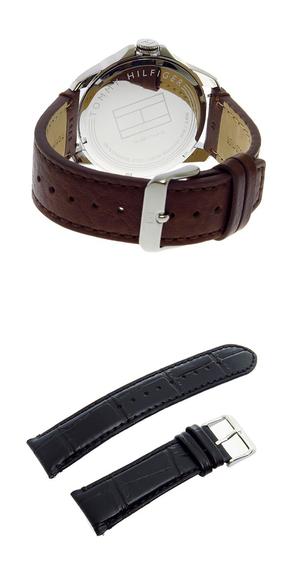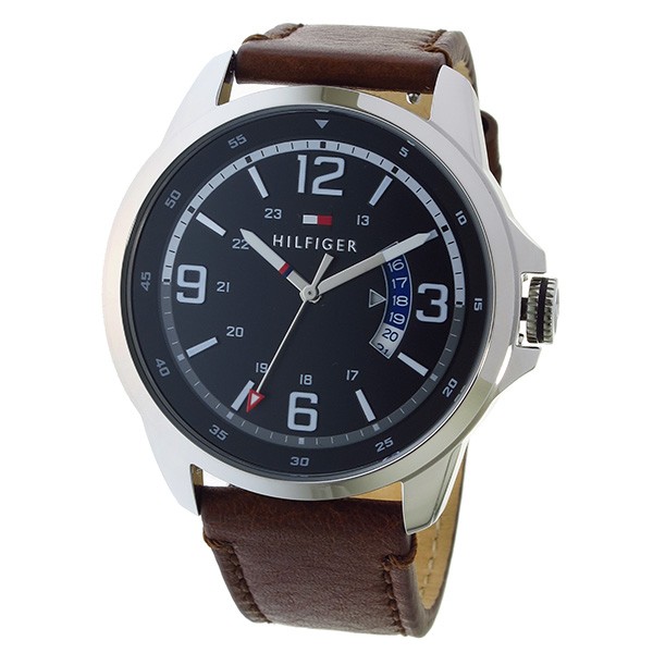 トミー ヒルフィガー TOMMY HILFIGER クオーツ メンズ ウォッチ 時計 ブラック  商品仕様:(約)H43×W43×D10mm(ラグ、リューズは除く)、重さ(約)68g、腕周り最大(約)19.5cm、最小(約)14cm ステンレス(ケース)、レザー(ベルト) 替えベルト、専用BOX、保証書、取扱説明書